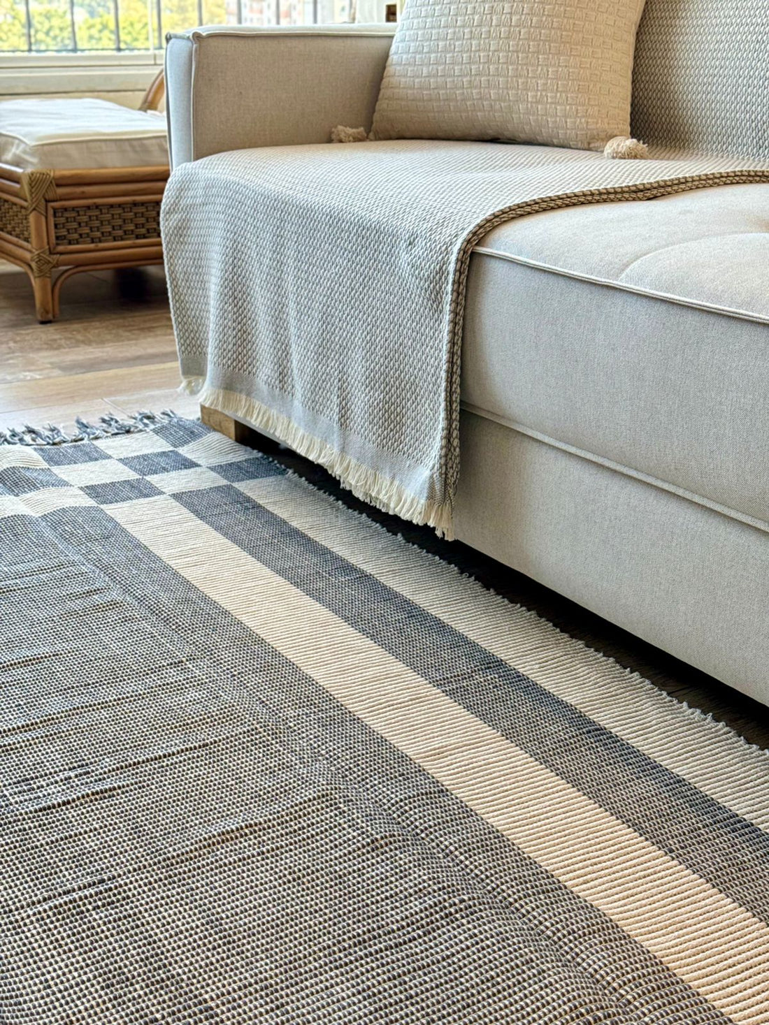 Tapete Artesanal 100% algodão Dupla Face Dama Cinza 0,50x0,70- Feito à Mão | Casa Naduni