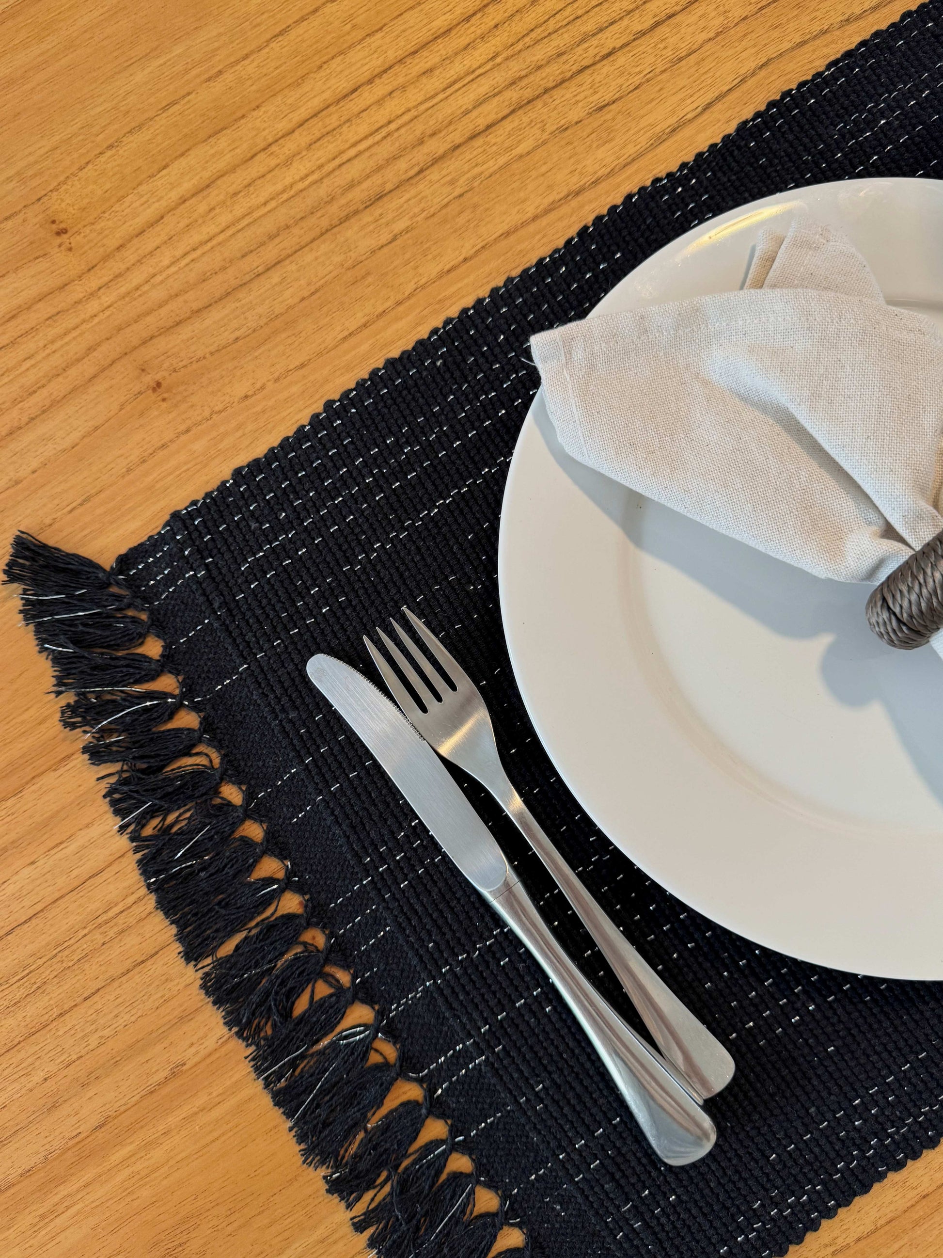 Jogo Americano Lurex Preto 100% Algodão - Feito à Mão | Casa Naduni